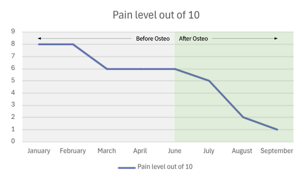 Reluctant to engage in heavy massage from physiotherapy, Mr. A.U. opted for our osteopathic clinic, drawn by its gentler approach.
